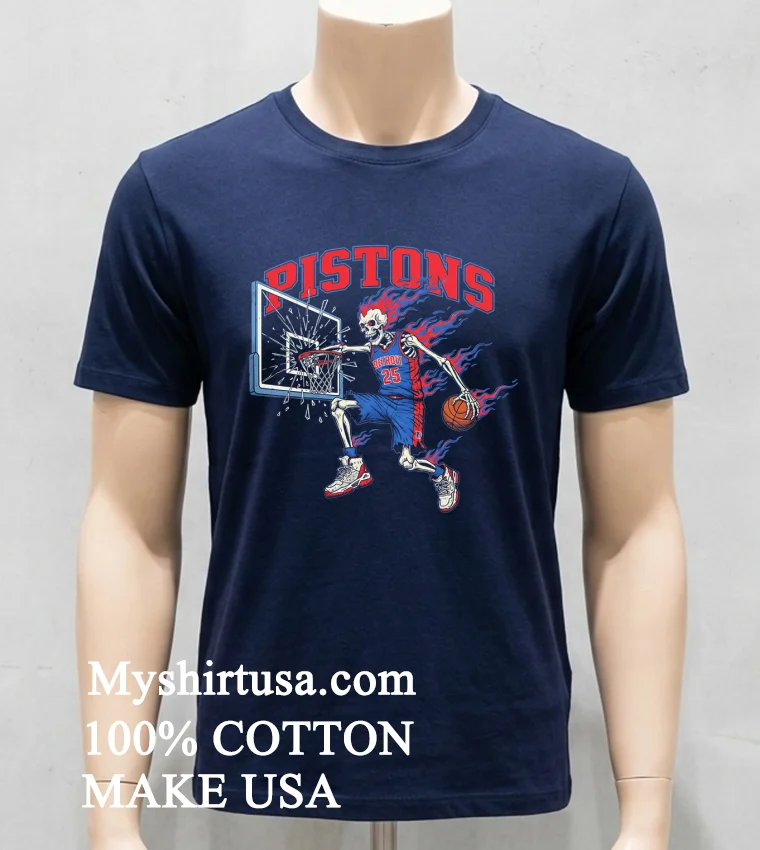 Let’s talk details, because this isn’t just any T-shirt you snag off the rack. First, the design: a fierce skeleton player, mid-dunk, engulfed in flames, all against the iconic Detroit Pistons backdrop. It’s a design that screams intensity, passion, and a little bit of playful rebellion far beyond a standard team logo tee. This isn’t mass-produced generic fan wear; it’s a piece of art that stands out in a crowd. Crafted from 100% premium American cotton, you’ll immediately feel the difference. It’s incredibly soft, breathable, and has just the right amount of stretch for that perfect relaxed fit, embodying that classic American style. Pair it with distressed denim and some fresh sneakers for a casual urban look, or throw it on with your favorite joggers for ultimate game-day comfort. To keep your awesome shirt looking pristine, simply machine wash it cold with like colors, inside out, and tumble dry low. Avoid bleaching or ironing directly on the design to preserve that fiery graphic for seasons to come.