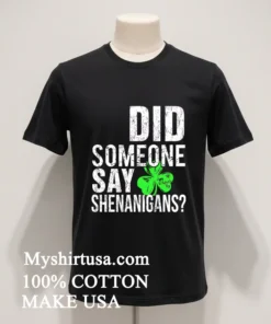 Planning a festive gathering? Or maybe you just need a dose of humor for a regular Tuesday? The Did Someone Say Shenanigans Shirt is your go-to! Whether it’s for St. Patrick’s Day, a casual weekend with friends, or just everyday fun, you can quickly snag this hilarious graphic tee at myshirtusa.com. Get ready to embrace the laughter with this funny t-shirt, party shirt, or ultimate humor apparel.