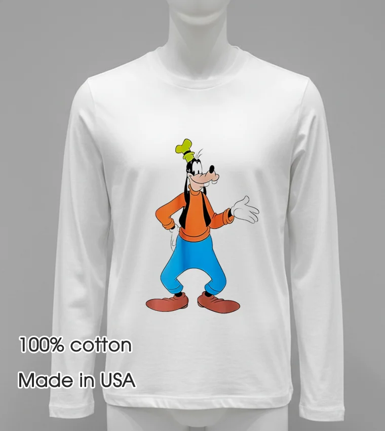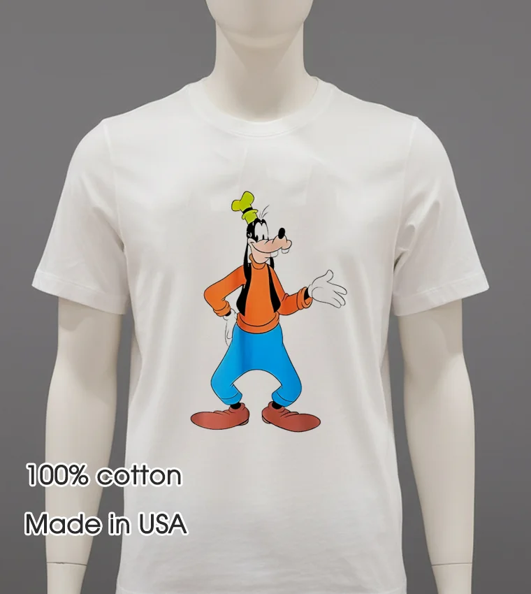 Let’s talk about what makes this shirt a real gem. First off, the design: It’s the traditional Goofy we all adore, captured in vibrant, long-lasting print that pops without feeling cheap. Unlike some flimsy character tees you might find, this isn’t just a quick screen print that’ll fade after a couple washes. This Goofy stands the test of time, just like your favorite childhood memories. The advantage? It’s a genuine piece of Americana, instantly recognizable, but with a subtle, cool factor that makes it suitable for adults. Crafted from premium 100% American Cotton, it’s incredibly soft, with just the right amount of stretch and breathability perfect for those warm summer days or layering under a flannel when there’s a chill in the air. Styling it is a breeze: pair it with distressed denim and sneakers for a true streetwear look, tuck it into some chino shorts for a laid-back vibe, or even throw it under an open button-down shirt for a smart-casual ensemble. And to keep your Goofy looking good? Wash it inside out in cold water to protect the print, tumble dry low, or better yet, air dry it flat. Trust me, a little care goes a long way in keeping that classic Goofy looking fresh for years.