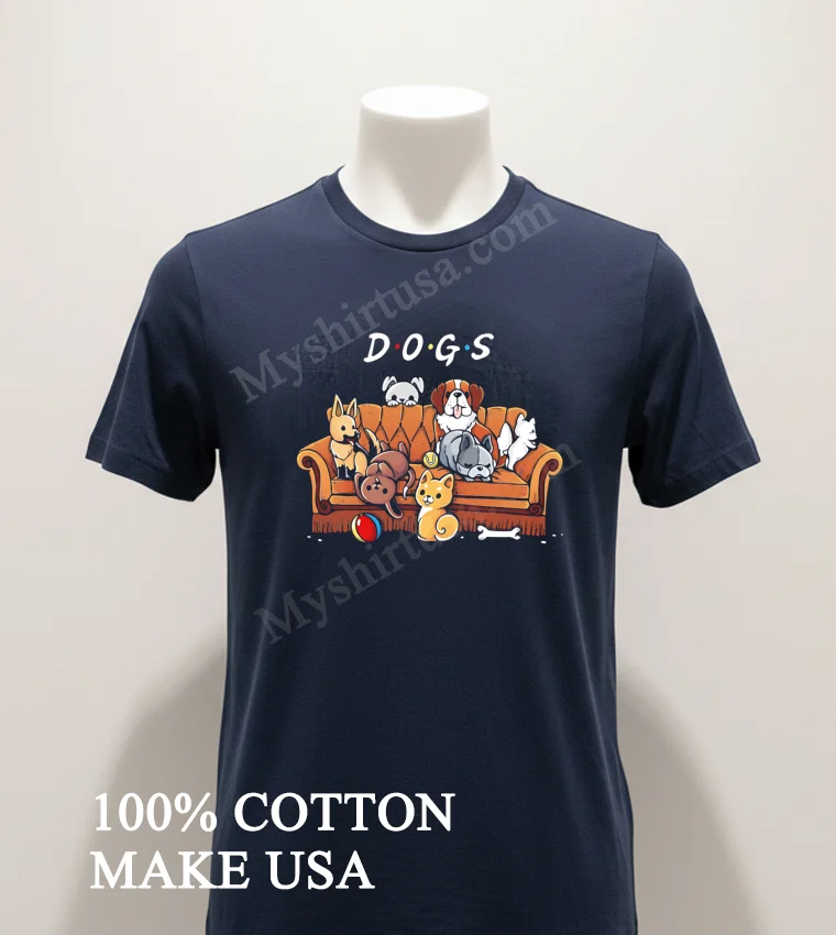 Ready to upgrade your comfort and style with a tee that speaks volumes? Why settle for basic when you can have quality and a dose of iconic fun? Our Dogs Friends Tv Show Parody Puppy Sofa Shirt boasts 100% American Cotton: it’s super soft, delightfully stretchy, and incredibly breathable. Priced at just $23 USD, with lightning-fast 3-5 day US delivery, this vintage, streetwear, American-style tee is a commitment to lasting quality and effortless cool. Get yours today from Myshirtusa!