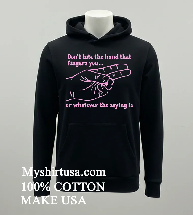 Ready to upgrade your wardrobe with a tee that truly speaks volumes? Why settle for boring when you can wear your wit? Grab your Don T Bite The Hand That Fingers You Or Whatever The Saying Is Shirt today! Crafted from 100% American Cotton, it’s soft, stretchy, and breathable all for just $23 USD. Enjoy lightning-fast 3-5 day delivery across the US. Shop the freshest Vintage, Streetwear, American styles now at Myshirtusa!