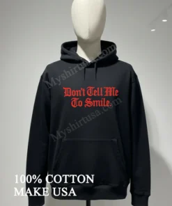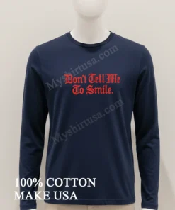 Ready to make your statement? Why just wear a shirt when you can express your authentic truth? Grab your Don T Tell Me To Smile Red Gothic Font Shirt today for just $23! Crafted from 100% soft, breathable American Cotton, guaranteeing premium comfort and that perfect Vintage American Streetwear vibe. Expect fast 3-5 day US delivery, right to your door. Shop Myshirtusa now!