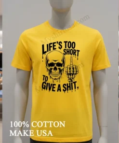 From the raw street style dominating festivals like SXSW to the anti-establishment vibe seen at recent fashion weeks, our tee embodies today’s fearless expression. Want to rock that bold attitude? At myshirtusa.com, snag your Dripping Skull Middle Finger Life’s Too Short To Give A Shit Shirt effortlessly. Find it using: edgy graphic tees, sarcastic apparel, skull middle finger shirt, rebel streetwear.