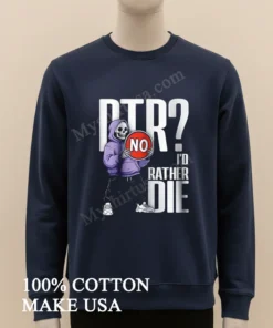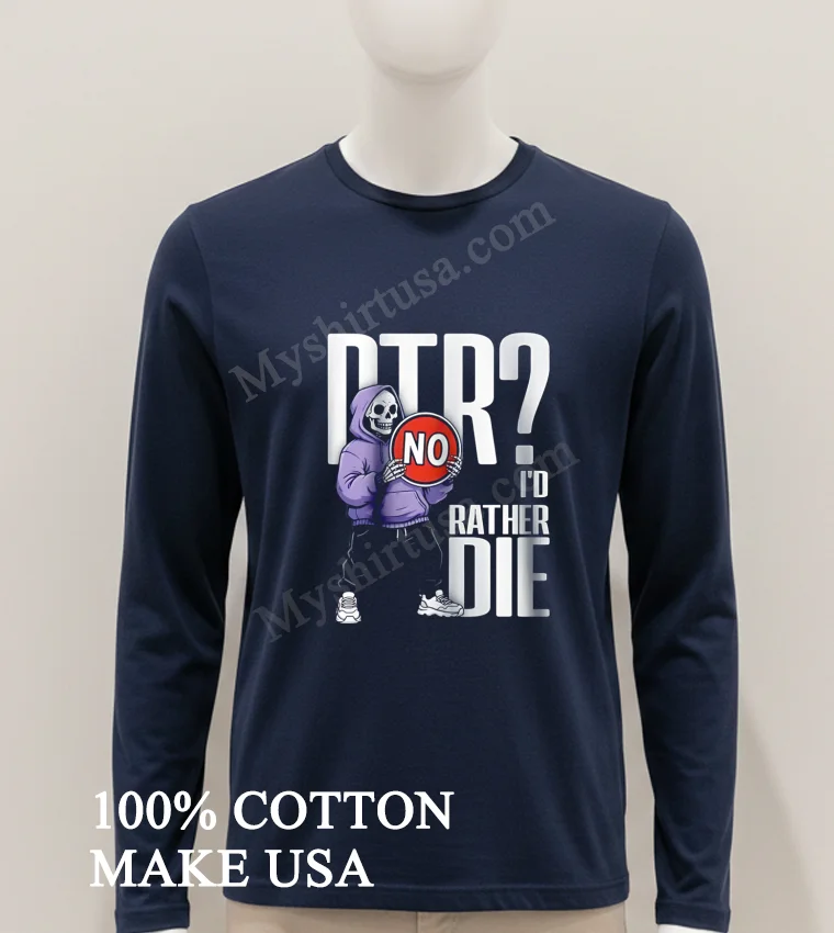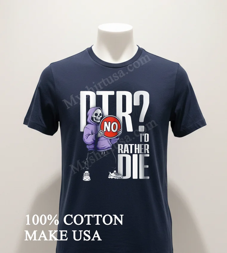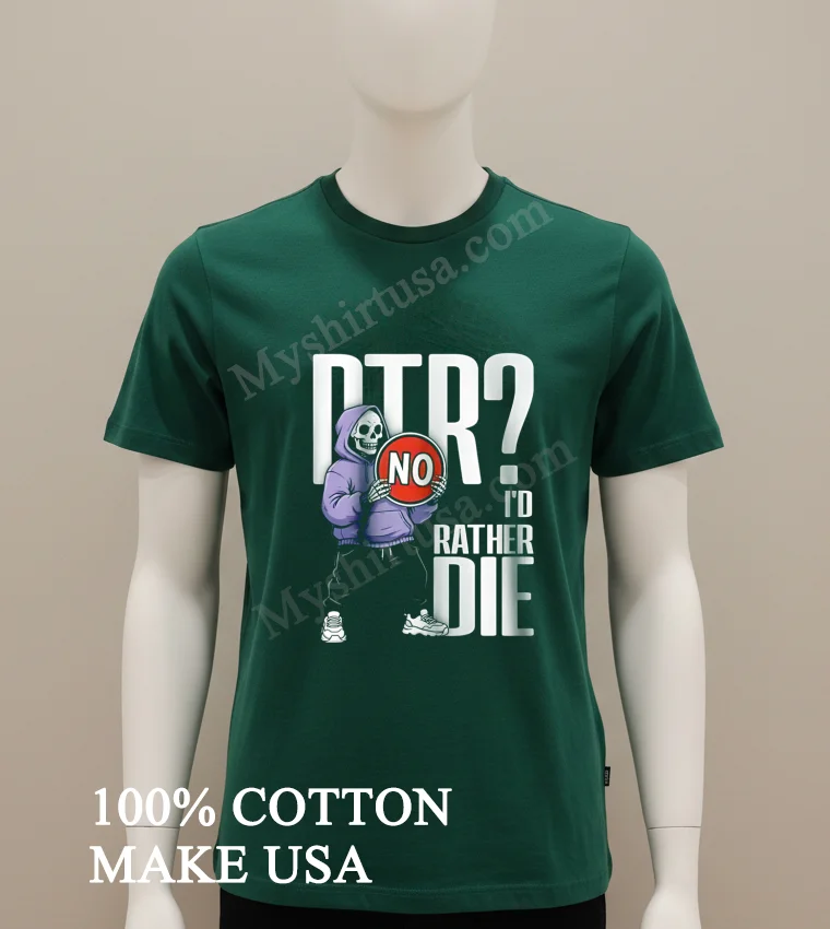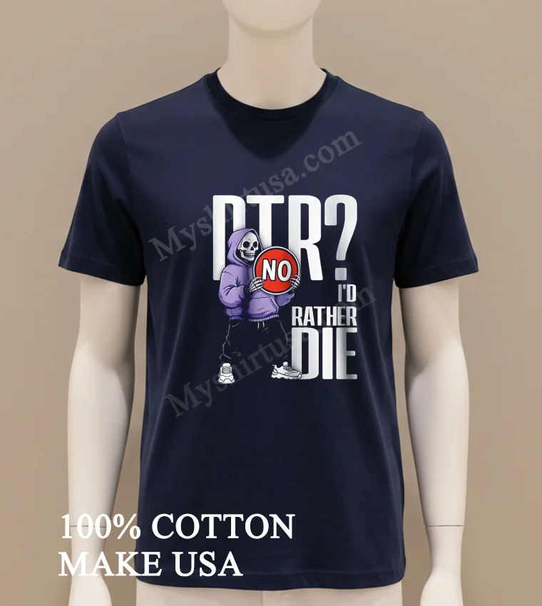 Ready for a tee that truly gets you? This Dtr No I Would Rather Die Grim Reaper Hoodie Skeleton Shirt, made from 100% American Cotton, is soft, breathable, and just $23 USD! Expect 3-5 day US delivery. Elevate your Vintage, Streetwear, American style with Myshirtusa! #grimreapertee #streetwearusa #altfashion #mydesigntshirt #usashirt