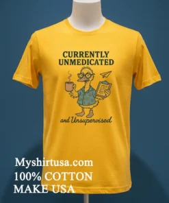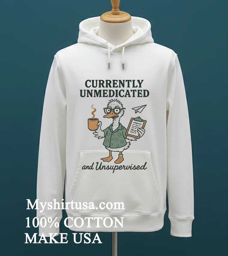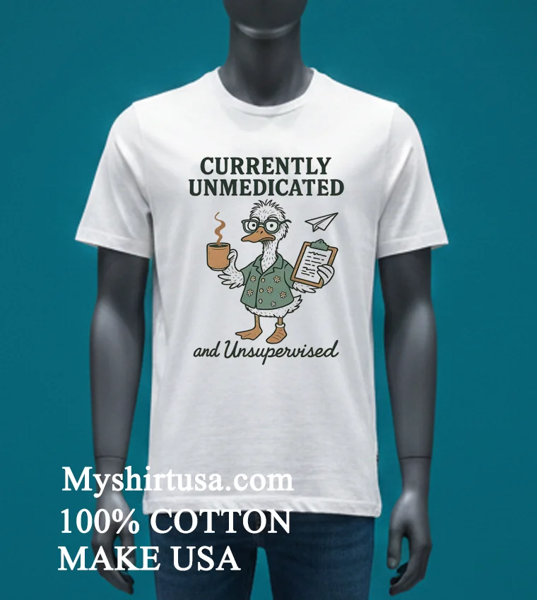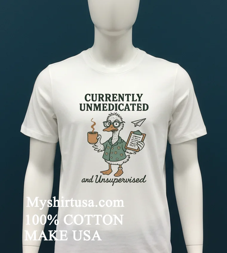Ready to embrace your inner unmedicated, unsupervised duck? Why settle for ordinary when you can wear a statement that speaks volumes? Our Duck Currently Unmedicated And Unsupervised Shirt is crafted from 100% American Cotton soft, stretchy, and breathable for all-day comfort. Get yours for just 23 USD with rapid 3-5 day delivery across the US. Experience vintage style with a modern streetwear edge, all while supporting American quality. Grab your Myshirtusa tee today!