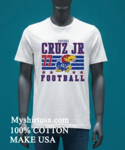 Ready to elevate your fan game with the ultimate blend of comfort and style? Don’t just watch the game; live it in your own Enrique Cruz Jr Kansas Jayhawks White Football Shirt. Crafted from 100% American Cotton – soft, stretchy, and breathable – it’s an absolute steal at just $23 USD. And with delivery in 3–5 days across the US, why wait? Embrace that Vintage, Streetwear, American style! Grab yours today from Myshirtusa!