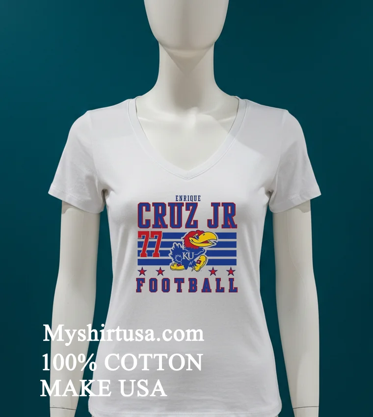Let’s talk about what makes this shirt truly stand out from the sea of basic tees. First off, the design itself. It’s not just a print slapped on; the vibrant Enrique Cruz Jr name and iconic Jayhawks graphics are integrated with a crispness that catches the eye without being overwhelming. This isn’t a flimsy screen print that’ll crack after a few washes – you can feel the quality difference right away. It offers an athletic appeal versatile enough to move beyond just game day. You know how some fan shirts feel stiff or cheap? Not this one. This tee is crafted from 100% American Cotton, feeling soft against the skin, breathable for intense moments, and has just the right amount of stretch for comfort without losing its shape.