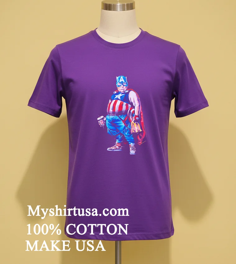 Why settle for bland when your wardrobe can reflect your unique personality? Isn’t it time to own a piece that sparks joy and conversation? Grab your very own Fat Trump Captain America Shirt today and experience the difference of 100% American Cotton soft, stretchy, and breathable. Priced at just $23 USD, with super-fast 3-5 day delivery across the US, this Vintage, Streetwear, American style tee is waiting for you!