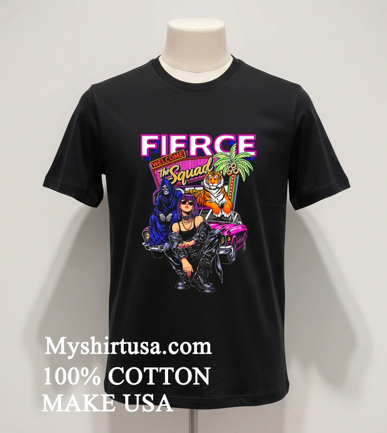 Now, let’s talk about what makes this tee truly stand out. Forget those flimsy, one-wash wonders you find everywhere else. The Fierce Welcome The Squad Shirt isn’t playing around. The graphic itself is bold, clear, and perfectly centered, exuding an effortless cool that speaks volumes without being over the top. It’s a design that feels both current and timeless, a refreshing take compared to a lot of generic prints out there. Crafted from 100% premium American cotton, this isn’t just soft; it’s seriously soft, the kind that feels like an old favorite from the very first wear. It’s breathable enough for a scorching summer day yet substantial enough to layer under a flannel or a denim jacket when the temps dip. As for styling? This beauty is incredibly versatile. Rock it with distressed jeans and your favorite sneakers for that classic streetwear vibe, or knot it at the waist with high-waisted shorts for a casual-chic look. For care, because we want this tee to last through countless adventures: simply machine wash cold, inside out, and tumble dry low. Avoid bleaching and ironing directly on the print to keep that “fierce” graphic looking fresh for years to come. Easy peasy, just like a good American tee should be.
