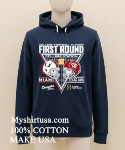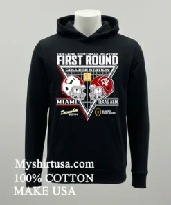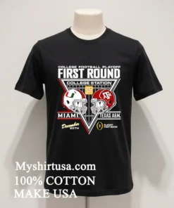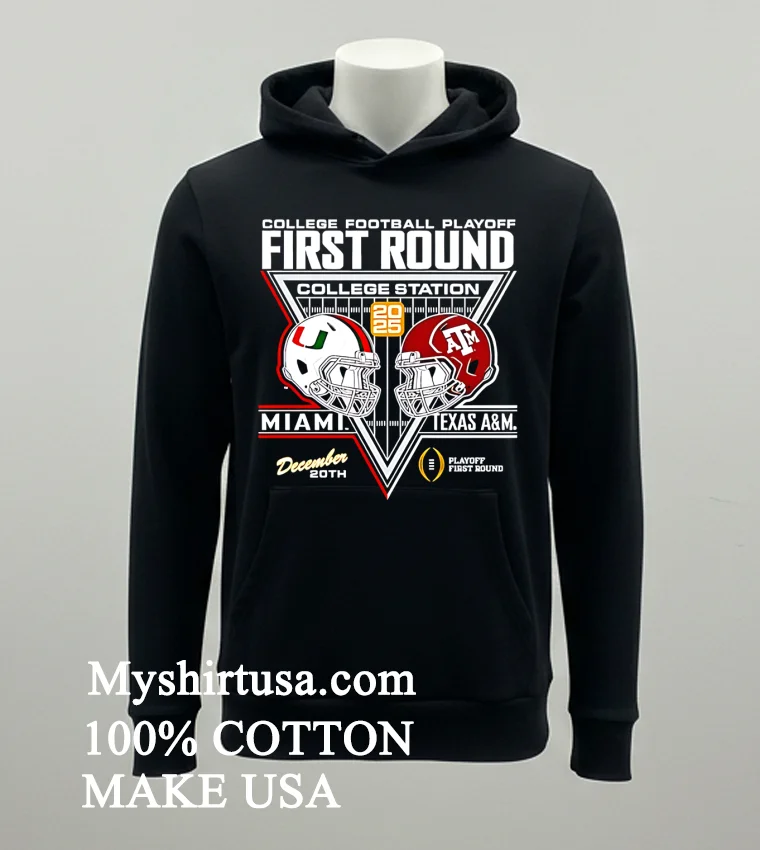 Let’s dive into what makes this tee truly special. The First Round Miami Hurricanes Vs Texas A And M Aggies 2025 2026 College Football Playoff Helmets Shirt isn’t just another printed tee; it’s a wearable piece of history-in-the-making. The design elements are sharp, featuring the iconic helmets of both teams, meticulously rendered to capture every detail. Unlike many mass-produced shirts, our print quality is vibrant and long-lasting, designed to withstand countless washes without fading or cracking, giving you an edge over lesser quality designs you might find out there. Crafted from 100% American Cotton, this shirt feels incredibly soft against the skin, offering that perfect balance of stretch and breathability—essential for those high-stakes game days or just kicking back with friends. The classic fit is universally flattering, making it incredibly versatile. Pair it with distressed denim and sneakers for a quintessential American casual look, or layer it under an open flannel shirt or a bomber jacket for a touch of contemporary streetwear cool. To keep your shirt looking its best, wash it inside out in cold water with similar colors, tumble dry on low, and avoid direct ironing on the design. This simple care routine will ensure your tee remains a vibrant part of your wardrobe for seasons to come.