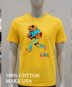 Let’s dive into the details. That football frog with its 8-camera rig? Pure design genius it’s witty, incredibly fresh, and genuinely stands out from the ocean of generic fan tees. This isn’t just another logo; it tells a story, sparks curiosity, and frankly, it’s way cooler than anything else out there. Crafted from premium 100% American Cotton, it’s not just soft to the touch but truly breathable and built to withstand countless game days and washes. I’m already picturing myself styling it with my trusty vintage Levi’s and classic Converse for that authentic, laid-back American streetwear vibe. For cooler evenings, it’ll layer perfectly under a rugged flannel shirt or a classic denim jacket. To keep this gem looking its best: always wash cold, inside out, and tumble dry low. A crucial tip: never iron directly on the vibrant graphic to preserve its crisp detail! You’ll find this shirt sparking conversations everywhere, from Reddit’s r/GraphicTees and Instagram feeds using #GameDayStyle to various sports fan Facebook groups, guaranteed to earn you compliments and questions like, “Dude, where did you find that awesome shirt?!”