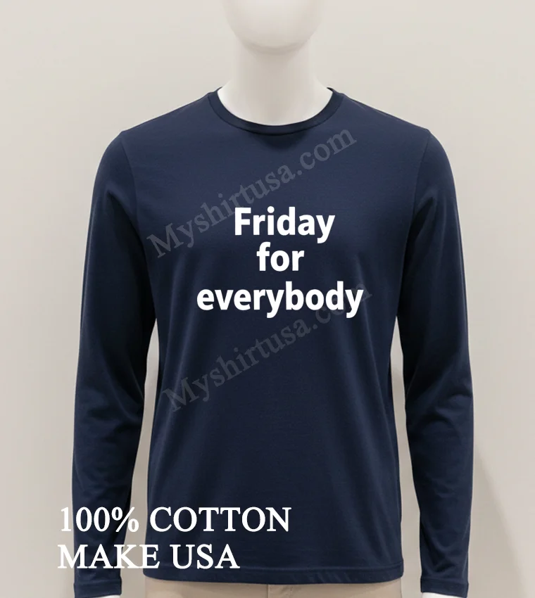The ‘Friday For Everybody’ spirit perfectly matches today’s relaxed American fashion scene from casual Fridays to weekend adventures. It echoes the rise of comfort-first style seen everywhere, from trending social media to local artisan markets. Grab your Friday For Everybody Minimalist Bold White Text Graphic Shirt instantly at myshirtusa.com. It’s ideal for casual Friday outfits, minimalist graphic tees, trendy weekend wear, and bold text fashion statements.