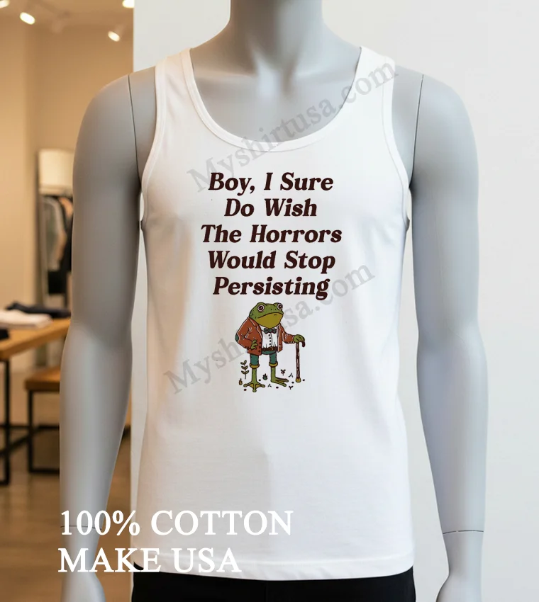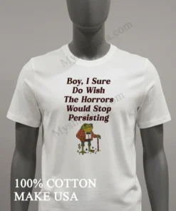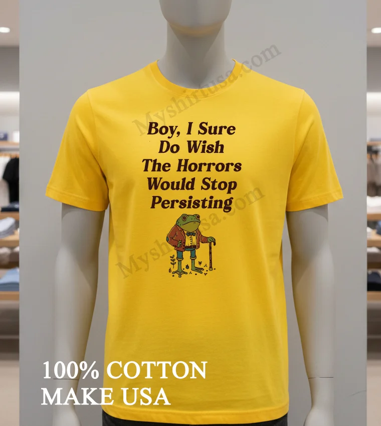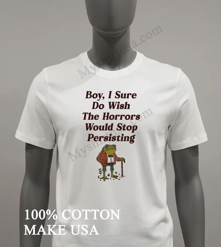 Ready to embrace the mood? Don’t just wish wear your sentiment! Why settle when you can have quality, comfort, and style that truly resonates? Our Frog Boy I Sure Do Wish The Horrors Would Stop Persisting Shirt, 100% American Cotton, soft, breathable, is just $23.00. Get it fast with 3-5 day US delivery. Elevate your Vintage, Streetwear, American style today at Myshirtusa!