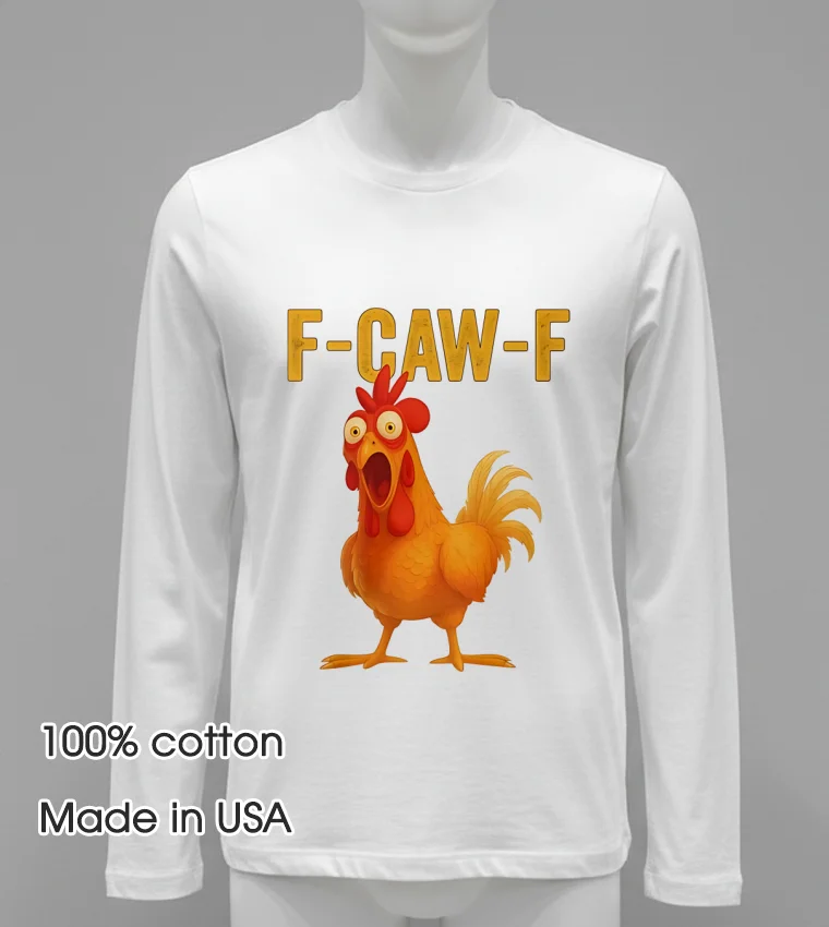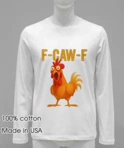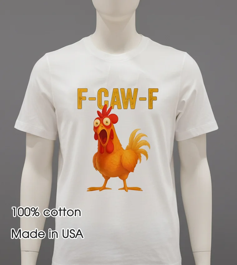 Just last week, while scrolling through my feed, I caught a clip of a popular sports analyst jokingly comparing a recent football team’s chaotic play to a flock of chickens running wild. He quipped, “It’s a regular ‘F Caw F Chicken’ situation out there!” Instantly, my mind jumped to this exact shirt, realizing it’s not just a funny graphic, but a wearable meme for any moment that calls for a bit of lighthearted chaos. Imagine wearing this to your next backyard BBQ, a casual game night, or even just running errands when you want to inject some personality into your outfit. In a world embracing “dopamine dressing” and the charm of unique, expressive graphic tees over “quiet luxury,” this shirt perfectly captures the playful, comfort-first aesthetic that’s defining casual American fashion right now.