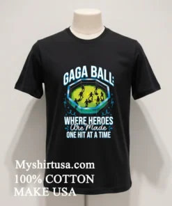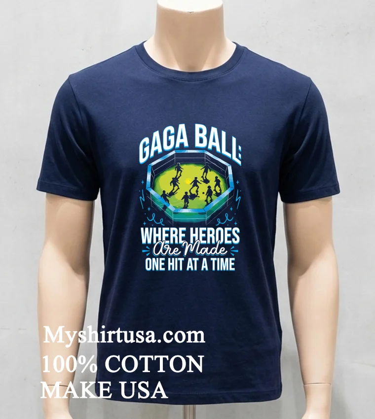 Ready to join the league of heroes? Why settle for ordinary when you can own the Gaga Ball Where Heroes Are Made On Hit At On Time Shirt? Crafted from 100% American Cotton, soft, stretchy, and breathable, this vintage-inspired tee is a steal at just $23 USD. Experience the thrill of fast fashion delivery, with your order arriving in 35 days right here in the US. Elevate your streetwear and American style today because heroes are made on hit, at on time! Myshirtusa guarantees quality that looks as good as it feels.