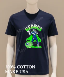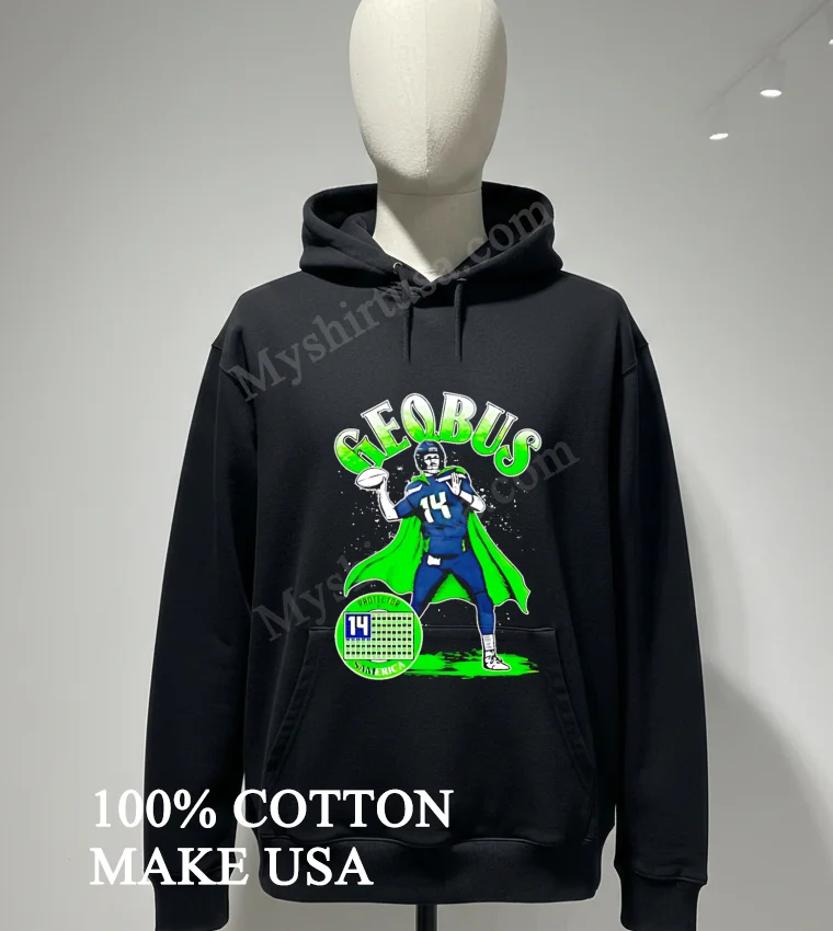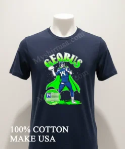 Let’s talk about what makes this tee special. First, the design: a dynamic, comic-book-style image of “Geofus Number 14” in his superhero cape, ready for action on the football field, all while subtly hinting at an American spirit. It’s bold, vibrant, and utterly unique. You won’t find this exact blend of humor, heroism, and gridiron glory on just any shelf. Compared to generic team jerseys or plain graphic tees, this shirt is a conversation starter, a piece of wearable art that celebrates both your love for the game and a playful sense of patriotism. We’re talking 100% American Cotton, folks. It feels incredibly soft against your skin, with just the right amount of stretch to move with you, whether you’re throwing a football in the park or reaching for another handful of chips. The style? It screams vintage, streetwise American cool. Pair it with your favorite distressed denim shorts for a casual summer look, or layer it under an open flannel shirt with some classic sneakers when the weather cools. It’s versatile enough for a concert, a buddy’s BBQ, or just lounging at home feeling like a low-key legend. And taking care of it? Super simple. To keep Geofus looking sharp, just turn it inside out, wash it in cold water with similar colors, and tumble dry on low. No harsh bleach, please! That way, your shirt stays vibrant and comfy for many seasons to come.