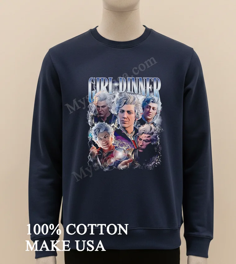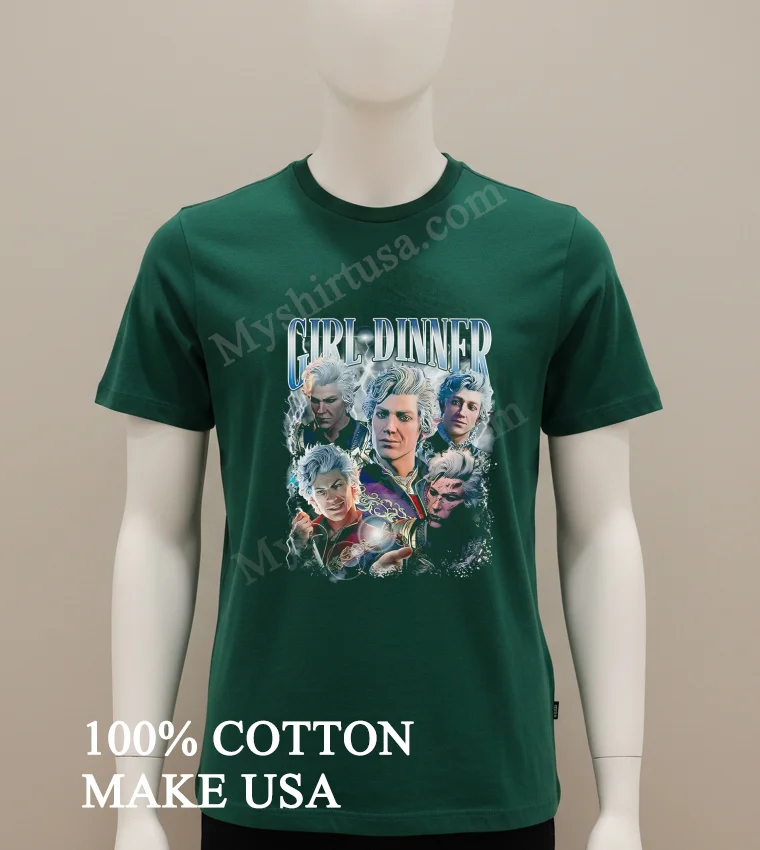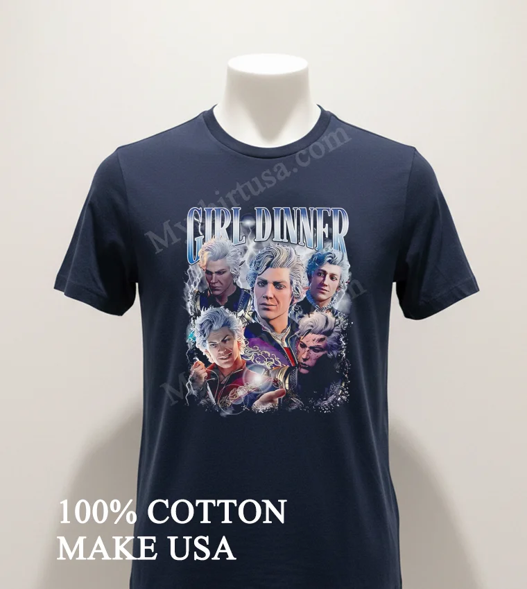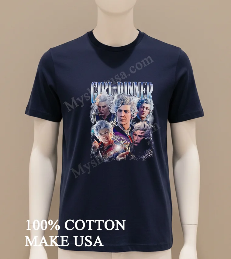 Let’s talk about what makes this shirt a real gem. First off, the design itself is brilliant. It takes the laid-back, relatable concept of “Girl Dinner” and brilliantly fuses it with Astarion, one of Baldur’s Gate 3’s most iconic characters. It’s witty, instantly recognizable to fans, and subtly humorous a far cry from generic, mass-produced merchandise. You won’t find this unique blend of pop culture commentary and character love just anywhere.