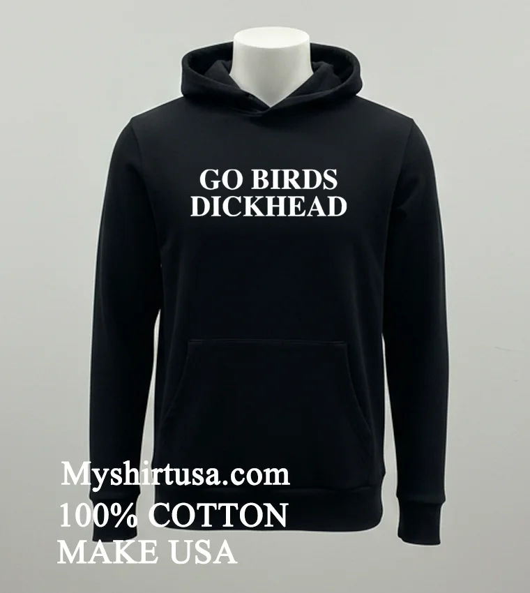 Now, let’s talk about what makes this shirt a cut above the rest. First off, the design isn’t some flimsy iron-on that’ll crack after a few washes. The “Go Birds Dickhead” graphic is crisp, bold, and has that perfectly distressed, vintage feel that looks like it’s been your favorite tee for years, right out of the box. Unlike those mass-produced team shirts that feel stiff and look generic, this one feels personal, like it was made specifically for someone who gets it. And the material? This isn’t just any cotton. We’re talking 100% premium American-grown cotton, pre-shrunk, so you don’t have to stress about it morphing into a belly shirt after its first spin in the dryer. It’s got that perfect balance of being substantial enough to feel high-quality, but still incredibly soft and breathable. The classic crew neck and relaxed fit mean it drapes just right – not too tight, not too baggy. You can rock it with your favorite pair of faded denim jeans for a casual weekend look, layer it under an open flannel shirt for that quintessential fall aesthetic, or pair it with cargo shorts and sneakers for a laid-back summer vibe. When it comes to care, keeping this tee looking fresh is a breeze. Just toss it in the washing machine with cold water, tumble dry on low, and for Pete’s sake, turn it inside out before ironing if you need to, to protect that awesome print. No bleach, ever, unless you’re aiming for a tie-dye catastrophe! Take care of it, and this shirt will be your faithful companion for many seasons to come.