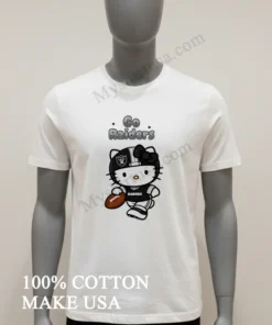 Let’s talk about what makes this tee truly special. First, the design itself it’s an absolute stroke of genius. You’ve got the iconic Raiders pirate shield logo, bold and unmistakable, juxtaposed with that cute, unexpected Hello Kitty twist. It’s not just a logo; it’s a statement. While every other fan is rocking the same old jersey, you’re standing out with something genuinely original. The black helmet jersey graphic isn’t just printed; it feels like it’s part of the fabric, ensuring it won’t crack or fade after a few washes a common headache with lesser quality tees. This isn’t just another mass-produced shirt; it’s designed to spark joy and curiosity, a real conversation starter at the tailgate or the coffee shop.