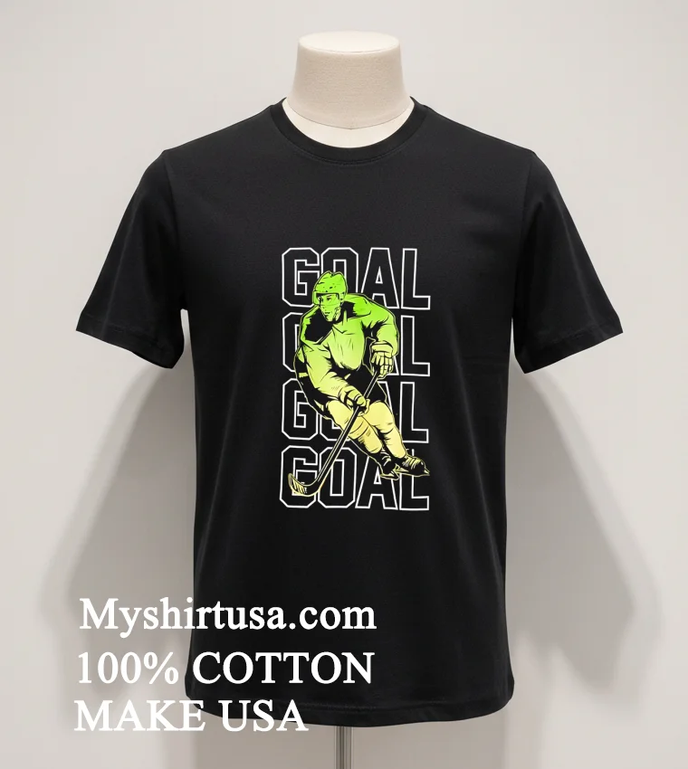 Let’s talk details, because this isn’t just any black tee. The graphic on the Goal Black Hockey Classic Shirt is a masterclass in understated cool. It’s got that slightly distressed, vintage feel, like you’ve owned it forever and it just gets better with age. We’re talking classic hockey motifs, bold but not over-the-top, giving it an authentic vibe that truly stands out from those generic, mass-produced designs you see everywhere. The advantage? It’s timeless. It won’t look dated next season, unlike some of the flashier, trend-chasing options out there. It’s the kind of graphic that tells a story, even if it’s just your story of loving the game. Now, about what it feels like. Made from 100% premium American Cotton, this isn’t that flimsy, see-through stuff. It’s got a comfortable weight, soft yet durable, making it breathable for those warmer days but also substantial enough to layer when there’s a chill in the air. The fit is a classic unisex style not too tight, not too baggy perfect for that relaxed, ‘I just threw this on and look effortlessly cool’ aesthetic. Pair it with distressed jeans and sneakers for a weekend vibe, or dress it up slightly with a bomber jacket and dark chinos. Ladies, throw it over some bike shorts or tie a knot at the waist with high-waisted denim for an instant street-style win. It’s incredibly versatile, fitting right into that casual American wardrobe. And keeping it looking fresh? Easy peasy. Turn it inside out before washing in cold water with similar colors. Skip the harsh bleaches. Tumble dry on low heat or, better yet, hang it to dry to preserve the print and fabric integrity. A little care goes a long way, ensuring this tee remains a staple in your rotation for years to come. Because a good shirt, like a good game, should last.