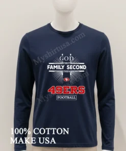 Here’s your standard SEO product listing for the God First Family Second Then 49Ers Football Shirt, written in an American style for WooCommerce, combining everyday life with current trends: