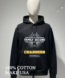 Here’s your SEO product listing for the God First Family Second Then Chargers Logo Football Shirt T-shirt, written in an American style and designed for WooCommerce: