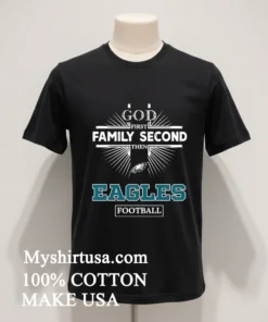 Ready to showcase devotion? Why wait? Get your high-quality God First Family Second Then Eagles Logo Football Shirt! 100% American Cotton: soft, breathable. Only $23 USD, with 3-5 day US delivery. Embrace Vintage, Streetwear, American style. Shop Myshirtusa now!