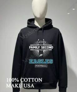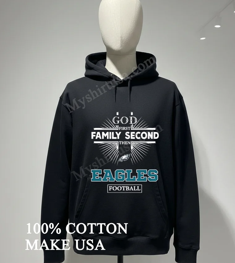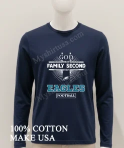 Eagles spirit is undeniable, from tailgates to watch parties! Team pride is a huge fashion trend right now. At myshirtusa.com, effortlessly grab your God First Family Second Then Eagles Logo Football Shirt. It’s more than just a tee; it’s a declaration of faith and devotion. Find your Philadelphia Eagles shirt and NFL fan gear easily to join the celebration!