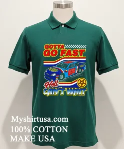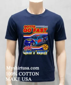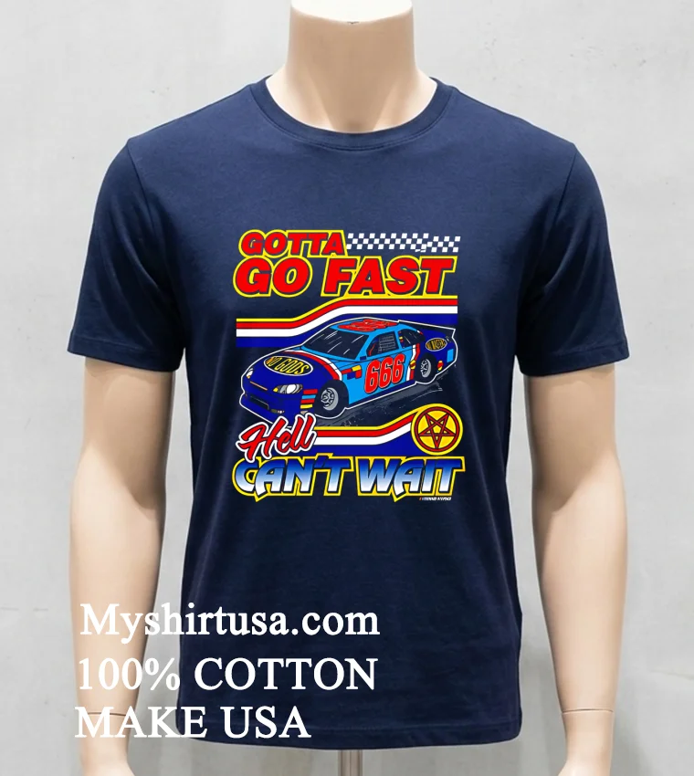 Let’s talk about what makes this tee truly special. Forget those flimsy, clingy shirts you dread wearing. Our design features that iconic “Gotta Go Fast Hell Can’t Wait” graphic, bold and unapologetic, capturing an edgy, vintage race-car feel that stands out from the generic stuff flooding the market. It’s printed with a slight distressed look, giving it that instantly beloved, worn-in vibe without actually being old. Made from 100% premium American cotton, this shirt isn’t just soft; it’s substantial. You can feel the quality the moment you pull it on. The fabric is breathable and stretches just right, molding to your shape without losing its form. Styling this bad boy is a breeze: throw it on with your favorite distressed denim and sneakers for a classic streetwear look, or layer it under a plaid flannel for a laid-back, rugged American vibe. For the ladies, try knotting it at the waist with high-waisted shorts or tucking it into a flowy midi skirt for an unexpected edge. To keep your shirt looking fresh, wash it inside out in cold water with similar colors, tumble dry on low, and please, no bleach! This care routine ensures the print stays vibrant and the fabric maintains its integrity for years to come.