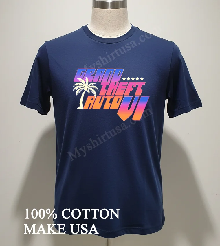 The buzz around the Grand Theft Auto VI trailer drop was absolutely insane, practically breaking the internet! From the immediate memes to the deep-dive analyses on YouTube, everyone’s talking about the Vice City vibes, the neon glow, and that iconic logo. It’s more than just a game; it’s a cultural moment, inspiring everything from TikTok trends to cosplay. And now, you can instantly join that conversation. On our site, customers can quickly and easily purchase this t-shirt, celebrating the excitement surrounding the Grand Theft Auto Vi Palm Tree Stars Logo Gaming Shirt. It’s the ultimate GTA VI fan apparel, a must-have for any gamer’s wardrobe, bringing that Vice City style to your everyday look.