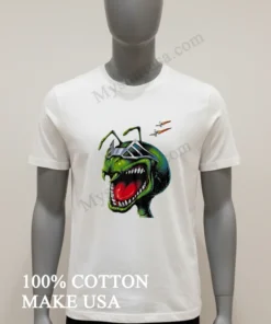 Don’t miss out on the buzz surrounding extraterrestrial fashion at this year’s San Diego Comic-Con or your local sci-fi meetup, where retro-futuristic styles are taking over! This unique piece perfectly captures the current fascination with alien pop culture and vintage sci-fi aesthetics. You can easily grab your own Green Ant Alien Wearing Silver Futuristic Visor With Spaceships Shirt right here at myshirtusa.com, your go-to for alien graphic tees, futuristic fashion shirts, and unique sci-fi apparel that’s always on trend.