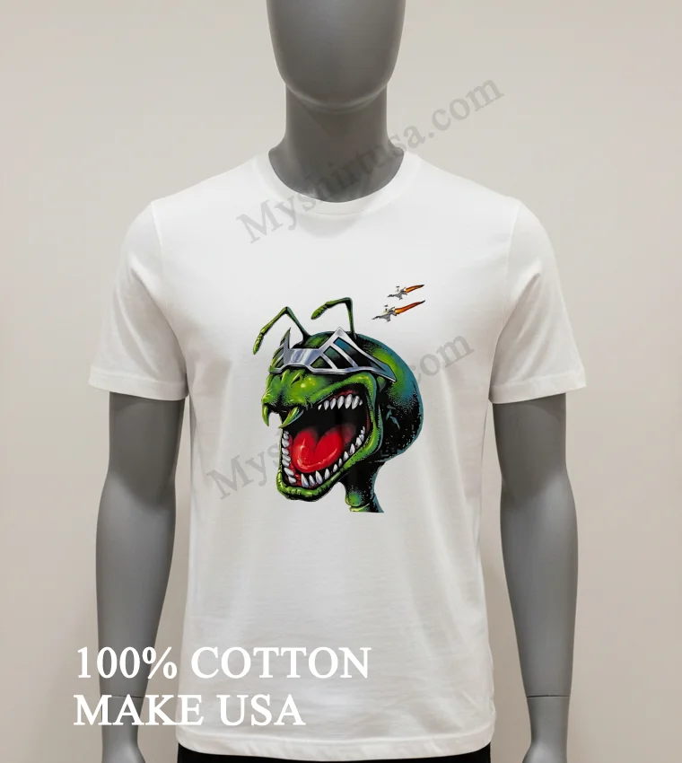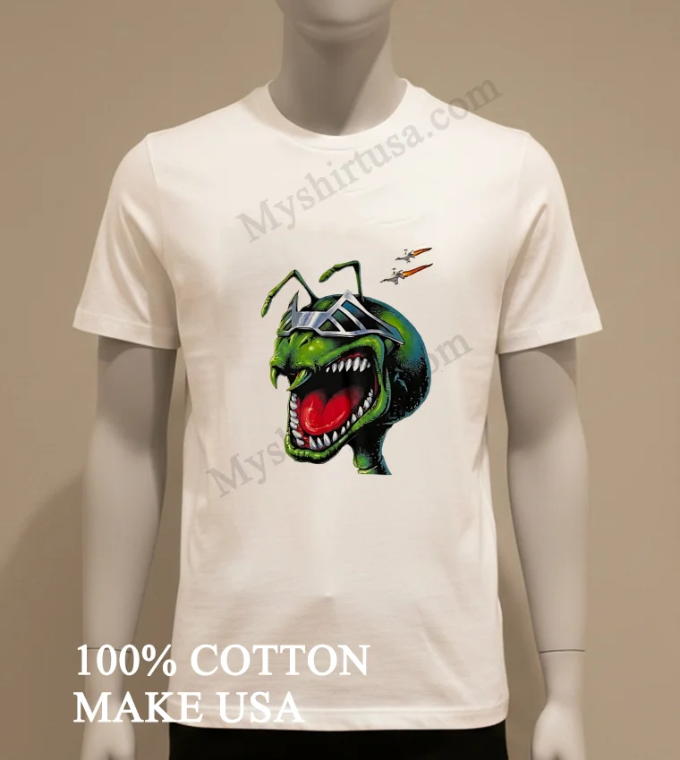 Ready to elevate your everyday wardrobe with a piece that truly pops? Why blend in when you were born to stand out? Our Green Ant Alien Wearing Silver Futuristic Visor With Spaceships Shirt is crafted from 100% American Cotton soft, stretchy, breathable, and designed for ultimate comfort. At just $23 USD, with speedy 3-5 day delivery across the US, this Vintage, Streetwear, American style tee is a must-have. Get yours now at Myshirtusa! #AlienTee #FuturisticFashion #StreetwearUSA #Myshirtusa #SciFiStyle