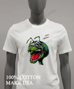 This isn’t just another t-shirt; it’s a statement. The design elements on this tee that quirky ant alien, the sleek silver futuristic visor, and the subtle spaceships make it a conversation starter, far more interesting than those generic, mass-produced designs flooding the market. Crafted from 100% American Cotton, it feels incredibly soft and breathable, whether you’re strolling Venice Beach or hitting a coffee shop in Brooklyn. I love pairing it with my distressed denim shorts and high-tops for that perfect streetwear vibe, or even layering it under an open plaid shirt for a more relaxed, American casual look. To keep that vibrant print looking sharp, just turn it inside out, wash cold with similar colors, and tumble dry low. This kind of unique art is always sparking discussions on TikTok fashion channels and Reddit’s r/streetwear.