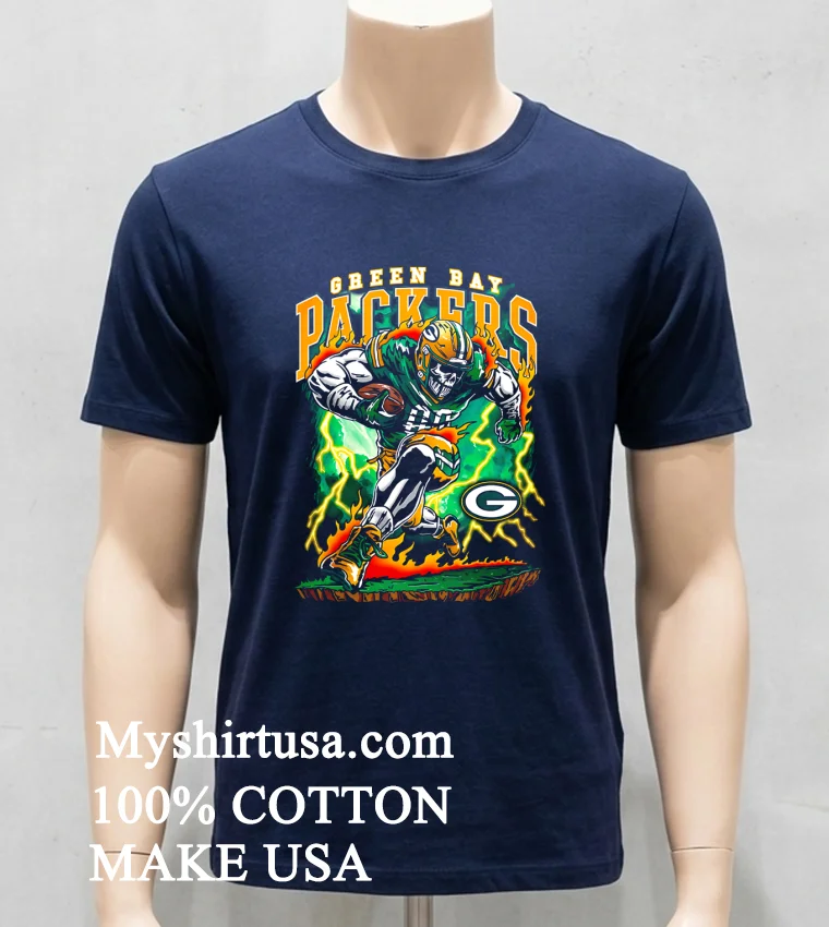 Let’s talk details because this isn’t just another mass-produced tee. The design elements on this shirt are pure gold for any Green Bay fan with a unique edge. We’ve got a skeleton, helmeted and ready for action, bringing a cool, almost vintage-punk vibe to the classic football motif. It’s edgy without being aggressive, playful yet undeniably dedicated. While other shirts might offer a standard logo, this one tells a story, sparks a conversation. Made from 100% American Cotton, it’s not just soft to the touch; it’s built to last. The fabric breathes, keeping you comfortable whether you’re cheering under the stadium lights or just running errands. Styling it is a breeze: throw it on with your favorite distressed jeans for a classic casual look, layer it under a flannel or an open denim jacket when the weather gets crisp, or even pair it with some track pants for that ultimate relaxed streetwear style. To keep your awesome shirt looking its best, wash it inside out with cold water, tumble dry on low heat, and avoid ironing directly on the graphic. Treat it right, and it’ll be your go-to game day (or any day!) shirt for seasons to come.