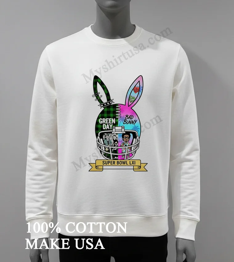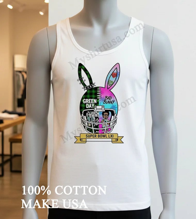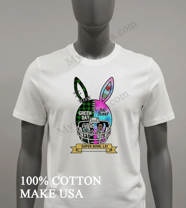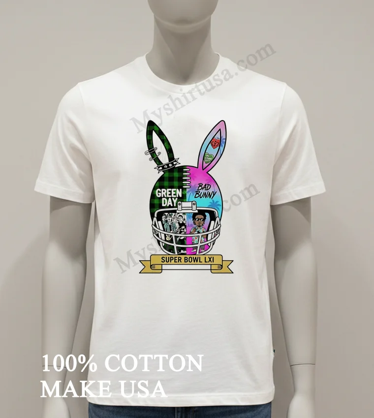 Relive the Super Bowl LXI hype, Green Day’s punk rock, or Bad Bunny’s vibrant energy this tee fuses it all into one incredible design! It’s the ultimate fan gear, perfect for any music fest, game day, or just showcasing your unique taste. At myshirtusa.com, snag your Green Day Bad Bunny Super Bowl Lxi Football Helmet Shirt quickly and easily. It’s ideal Super Bowl LXI merch, a unique Green Day Bad Bunny fan tee, and the coolest football helmet shirt or concert shirt for your wardrobe. Don’t miss out on this crossover sensation!