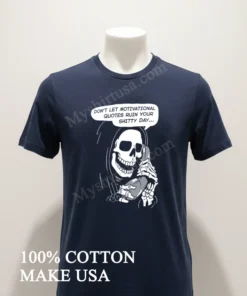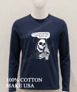 “Absolutely love this shirt! Got my Grim Reaper Phone Don T Let Motivational Quotes Ruin Your Shitty Day Shirt in just three days, free shipping too can’t beat that!” says a happy customer. We hear that a lot. People are thrilled with how fast their orders from Myshirtusa arrive, and the free shipping is always a win. Ever wonder about returns? We make it easy. Our customers tell us they wear their new favorite T-shirt all the time because it feels great and always gets a laugh.