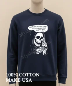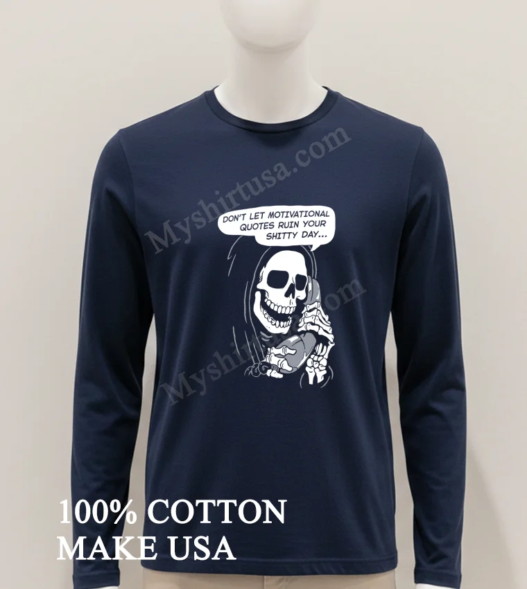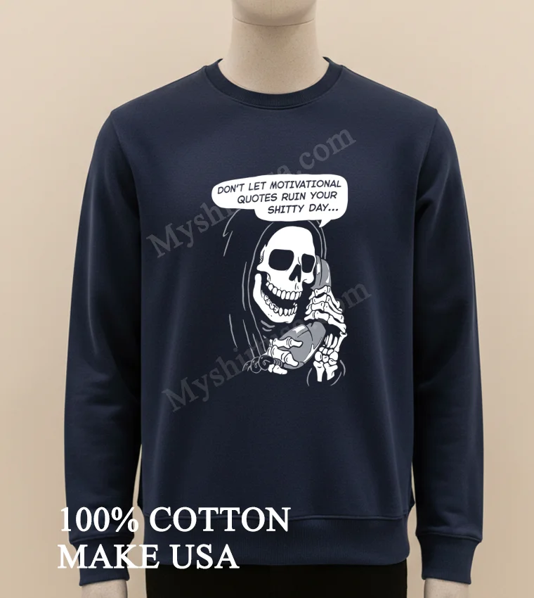 Ready to ditch the fake smiles and embrace genuine self-expression? Our Grim Reaper Phone Don T Let Motivational Quotes Ruin Your Shitty Day Shirt is crafted from 100% American Cotton, offering a soft, stretchy, and breathable experience for just $23 USD. Enjoy fast delivery in 35 days across the US. What’s not to love about vintage, streetwear, American style, delivered quickly? Get yours from Myshirtusa today!