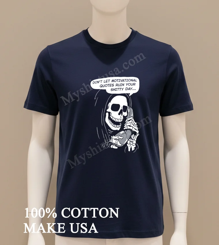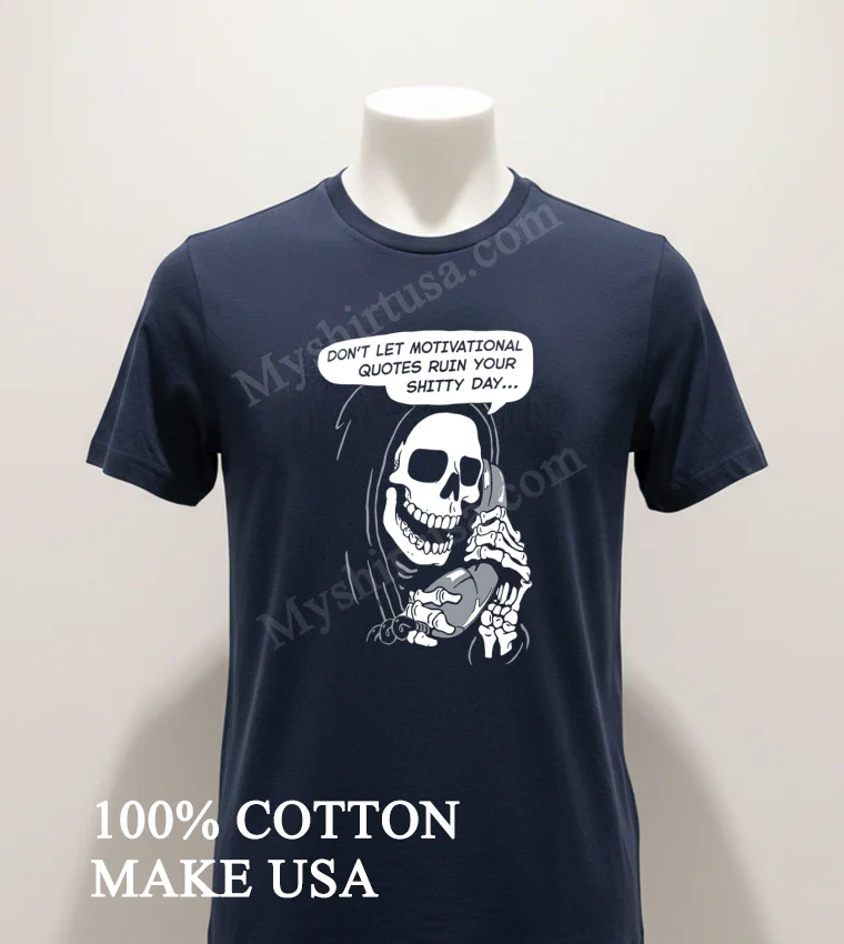 You know, sometimes those relentless “good vibes only” messages online can feel… a bit much. Just last week, I was scrolling through my feed, and a viral TikTok clip popped up where a popular comedian was talking about how exhausting it is to constantly pretend everything’s perfect. He joked about needing a shirt that just got it, a real “tell it like it is” kind of vibe. That immediately brought to mind our Grim Reaper Phone Don T Let Motivational Quotes Ruin Your Shitty Day Shirt. It’s perfect for those days when you just need to acknowledge that, yeah, some days are, well, shitty. It’s a brilliant antidote to the forced optimism that’s so prevalent, especially as we see a rising trend in fashion towards authentic self-expression and ‘anti-aesthetic’ styles. Forget the curated perfection; this tee embraces the beautifully imperfect reality of life, fitting right into the current demand for unique, statement graphic tees that resonate with genuine human experience.