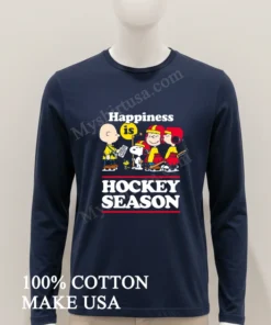 Let’s talk about what makes this shirt a real standout. First off, the design elements are pure gold. You’ve got Charlie Brown, Snoopy, and Woodstock, all decked out in classic hockey gear, looking ready for a slap shot. The “Happiness Is…” caption adds that iconic Peanuts philosophical touch, blending perfectly with the energetic hockey scene. It’s more than just a character tee; it’s a story on fabric, a little piece of Americana that sparks conversation. Unlike a generic sports jersey or a plain graphic tee, this shirt offers a unique blend of nostalgia, sports enthusiasm, and a positive message that truly stands out. As an American consumer, I appreciate that blend of comfort and character. The material itself is a soft, breathable cotton blend you know, the kind that feels like you’ve owned it forever from the first wear, not stiff and scratchy. It’s got that relaxed, slightly oversized fit that everyone’s loving right now, a classic crew neck that just works. You can easily style it: tuck it into high-waisted vintage jeans with some fresh white sneakers for that perfect laid-back look, or layer it under an open flannel shirt when there’s a chill in the air. For care, keep it simple: cold wash inside out to protect that awesome print, then tumble dry low or, better yet, hang it up to keep it looking sharp for years. Nobody wants a faded tee after just a few washes, right?