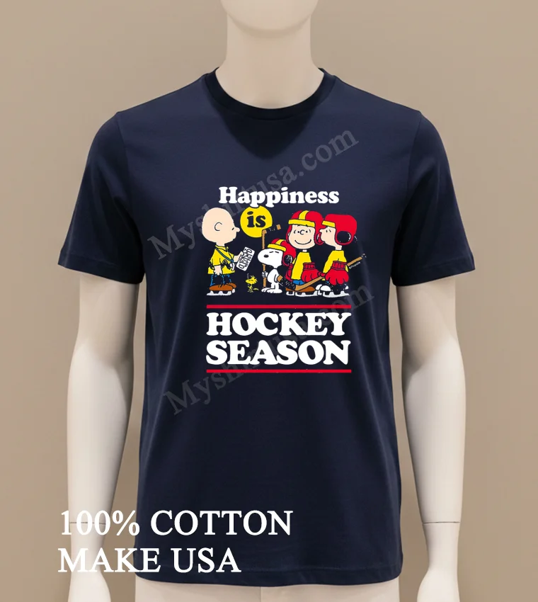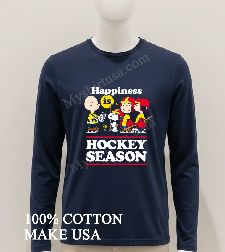 Happiness Is Charlie Brown Snoopy Woodstock Hockey Season Peanuts Team Shirt