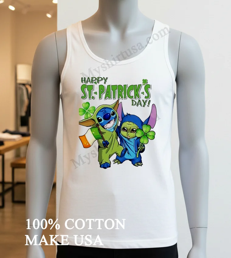 Happy St. Patrick S Day Stitch Grogu Yoda Irish Flag Shirt