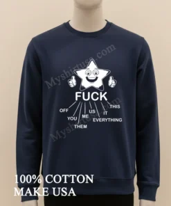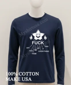 This shirt isn’t just a piece of fabric; it’s a whole vibe that resonates with today’s mood. With the rise of “quiet quitting” and a general sense of humorous disillusionment, the “fuck everything” sentiment, delivered with a cheerful “thumbs up,” captures a moment. It’s a cheeky nod to those days when you’re just done. At myshirtusa.com, snagging this sarcastic tee, rebel fashion statement, or expressive apparel is super easy and quick. Embrace the anti-establishment shirt that says it all.
