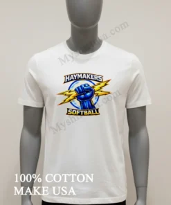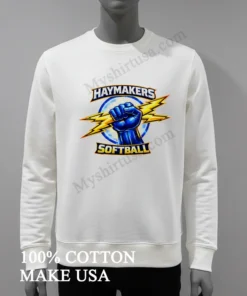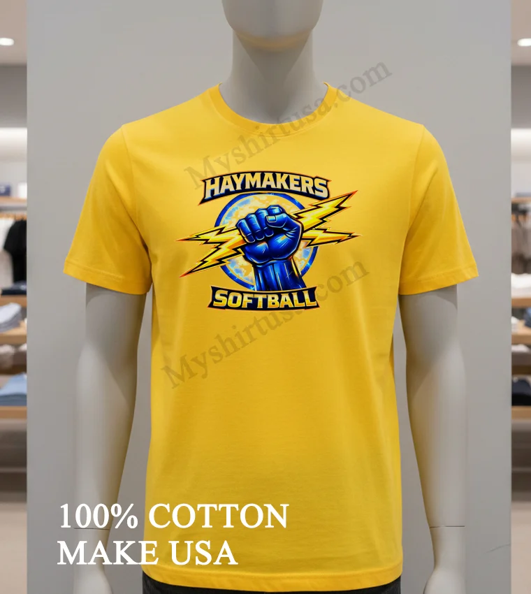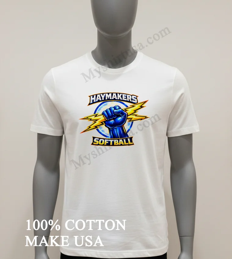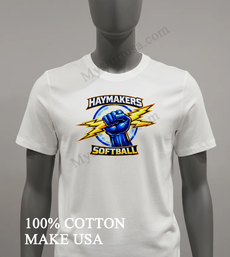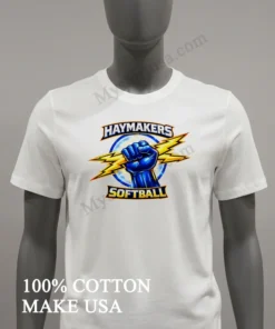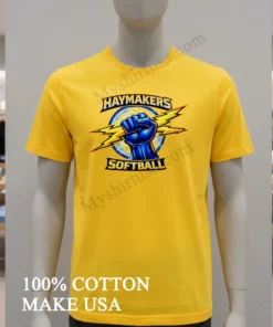 America’s love for softball never fades, from bustling urban leagues to small-town summer tournaments. These events aren’t just games; they’re community celebrations! Show your unwavering Haymakers spirit instantly. At myshirtusa.com, you can quickly purchase your Haymakers Softball Blue Fist Holding Yellow Lightning Bolts Logo Shirt. It’s the ultimate softball apparel, perfect for team spirit wear, a lightning bolt tee, or fist logo shirt!
