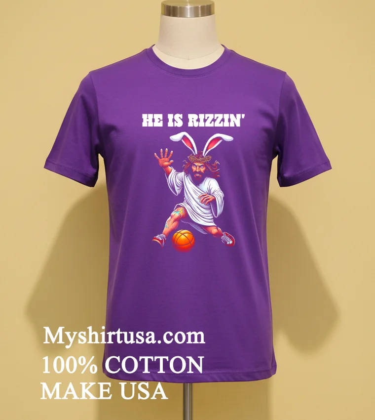 Remember when that viral clip of that basketball player, let’s call him “Hoops Hallelujah,” wore something totally unexpected to a post-game presser? It sparked a whole new conversation about embracing individuality and fun in fashion. Well, if you felt that vibe, you’re going to get the He Is Rizzin Bunny Ear Jesus Playing Basketball Shirt. It’s more than just a shirt; it’s a statement, perfect for hitting up your local pickup game, rocking at a casual brunch, or even just chilling at home watching the latest NBA playoffs. With the ‘quiet luxury’ trend still making waves, but Gen Z pushing back with bold, expressive graphics, this tee perfectly blends that desire for unique self-expression with comfort. It’s the kind of piece that says, “Yeah, I’m tuned into what’s happening, but I’m also just here to have a good time.”