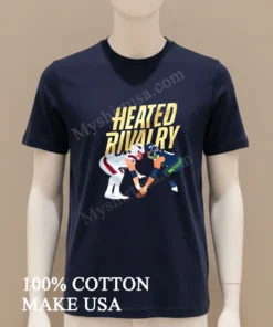 Now, let’s talk about what makes this tee stand out in a sea of basic shirts. First off, the design: it’s not just a logo slapped on. We’re talking about a dynamic, almost hand-drawn illustration capturing the intensity of those legendary players locked in rivalry. The colors pop, vivid and true, resisting that faded look even after countless washes. This isn’t some thin, see-through fabric you’d expect from a cheap souvenir stand. We use 100% American Cotton, which means it feels incredibly soft against your skin that kind of broken-in comfort right from the first wear. It’s got that perfect medium weight, making it durable yet breathable, not too heavy, not too light. The classic crew neck and standard fit make it incredibly versatile. You can style it so many ways: throw it on with your favorite distressed jeans and sneakers for a casual weekend look, or layer it under a denim jacket or an open flannel for that cool, effortlessly American vibe. For care, it’s simple: wash inside out in cold water with similar colors, tumble dry on low, or better yet, hang dry to keep that graphic looking sharp. And please, no bleach or ironing directly on the design you want that rivalry to stay heated, not singed!