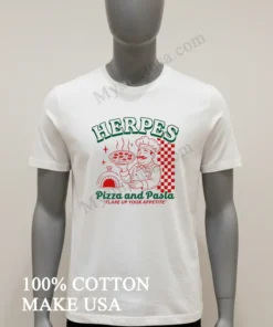 Ready to flare up your own appetite for style? Why settle for boring when you can wear a statement? Our Herpes Pizza And Pasta Flare Up Your Appetite Italian Chef Logo Shirt is crafted from 100% American Cotton, ensuring it’s soft, stretchy, and breathable perfect for any day at just $23 USD. Expect your new favorite tee to arrive quickly, with delivery in just 35 days across the US. Shop now at Myshirtusa and embrace that unique Vintage, Streetwear, American style!
