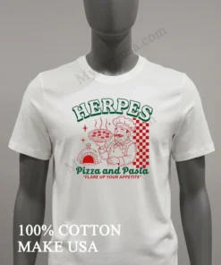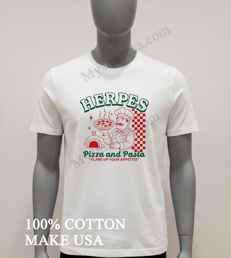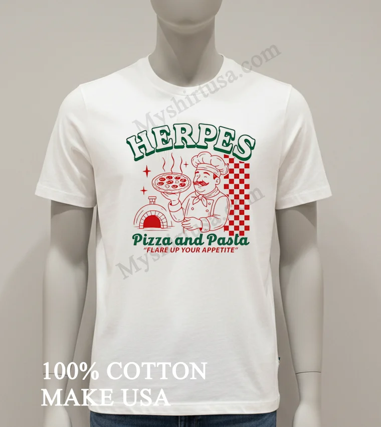 Speaking of good laughs, have you noticed how much graphic tees are dominating the American fashion scene lately? From celebrity street style to local block parties, unique designs are everywhere. This Herpes Pizza And Pasta Flare Up Your Appetite Italian Chef Logo Shirt fits right into that trend, standing out at food festivals or even casual get-togethers. Grab yours quickly at myshirtusa.com it’s perfect for anyone seeking a unique chef t-shirt, pizza pasta apparel, or just a funny Italian tee.