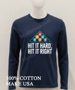 Feel the thrill of a perfect break or the joy of a friendly game with friends? Our Hit It Hard Hit It Right Play Billiards Shirt captures that winning spirit perfectly! It’s the ultimate statement piece for any pool event, from casual bar challenges to serious tournaments, perfectly hitting today’s retro sports apparel trend. Snag this must-have tee quickly and easily at myshirtusa.com your top source for authentic billiards shirts, cool pool player gifts, cue sport style, and game day fashion.