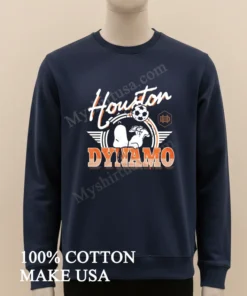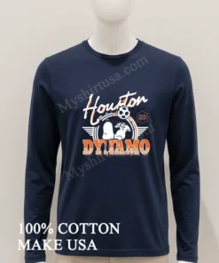 As an American consumer, I’m all about comfort that doesn’t sacrifice style, and this shirt totally gets it. When I first pulled it out, that vibrant orange just popped, perfectly merging the iconic Houston Dynamo crest with the playful, timeless charm of Snoopy and Woodstock kicking a soccer ball. Honestly, it’s a breath of fresh air compared to those stiff, mass-produced fan shirts. This one’s a conversation starter, blending my sports pride with that sweet Peanuts nostalgia from my childhood. And the material? It’s 100% American cotton, incredibly soft and breathable, feeling like that favorite vintage tee you’ve worn a thousand times, right out of the box. I love styling it for a casual streetwear vibe with some distressed jeans, or layering it under my favorite denim jacket when I head out for coffee. To keep it looking this good, I always machine wash cold inside out and then tumble dry low or sometimes hang dry to really preserve that awesome print. Want to see what others are saying? Jump onto Reddit’s r/MLS, Houston Dynamo fan groups on Facebook, or even check out #SnoopySoccer on Instagram seriously, fans are raving about how awesome this tee is!