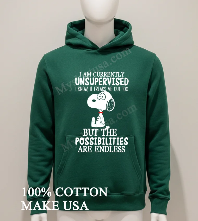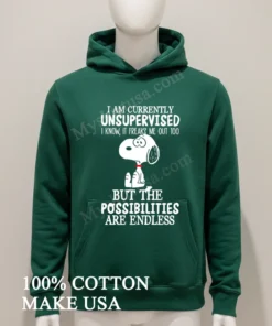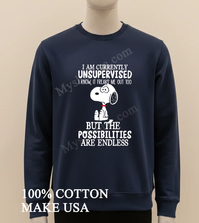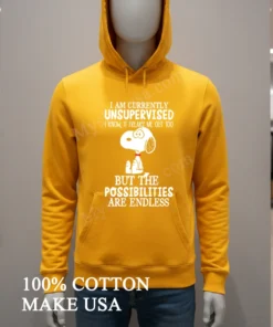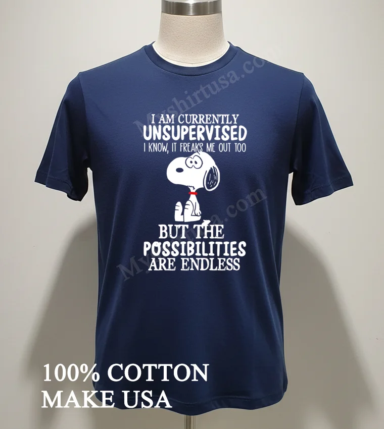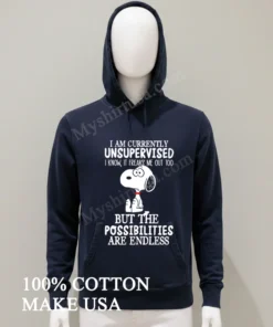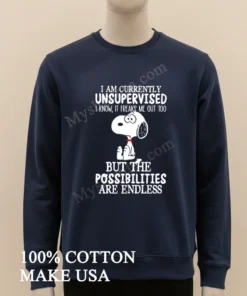 Ready to embrace your inner unsupervised dog? Why settle for less? Get 100% American Cotton soft, stretchy, breathable perfection! At just $23, with 3-5 day US delivery, this vintage American streetwear tee is a no-brainer. Grab your I Am Currently Unsupervised Snoopy Dog Endless Possibilities Shirt today! #SnoopyShirt #UnsupervisedVibes #AmericanStreetwear #CoolTee #Myshirtusa